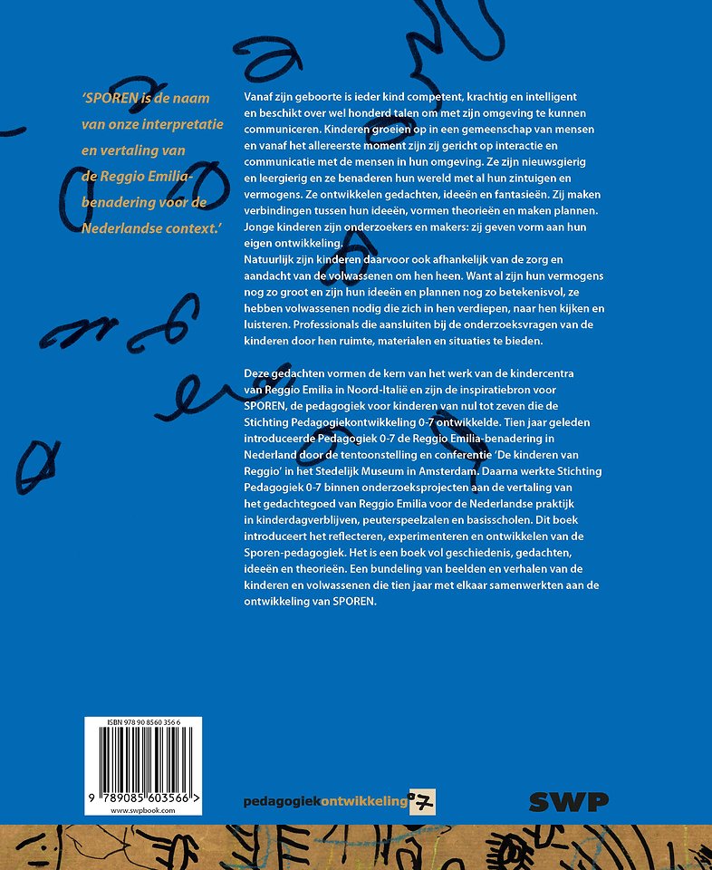 Deze gedachten vormen de kern van het werk in Reggio Emilia en zijn de inspiratiebron voor SPOREN, de pedagogiek voor kinderen van nul tot zeven die de Stichting Pedagogiek-ontwikkeling 0-7 ontwikkelde. Tien jaar geleden introduceerde Pedagogiek 0-7 de Reggio Emilia benadering in Nederland door de tentoonstelling en conferentie De kinderen van Reggio in het Stedelijk Museum Amsterdam. Daarna werkte Stichting Pedagogiek 0-7 binnen onderzoeksprojecten aan de vertaling van het gedachtegoed van Reggio Emilia voor de Nederlandse praktijk in kinderdagverblijven, peuterspeelzalen en basisscholen. Dit boek introduceert de Sporen-pedagogiek.
