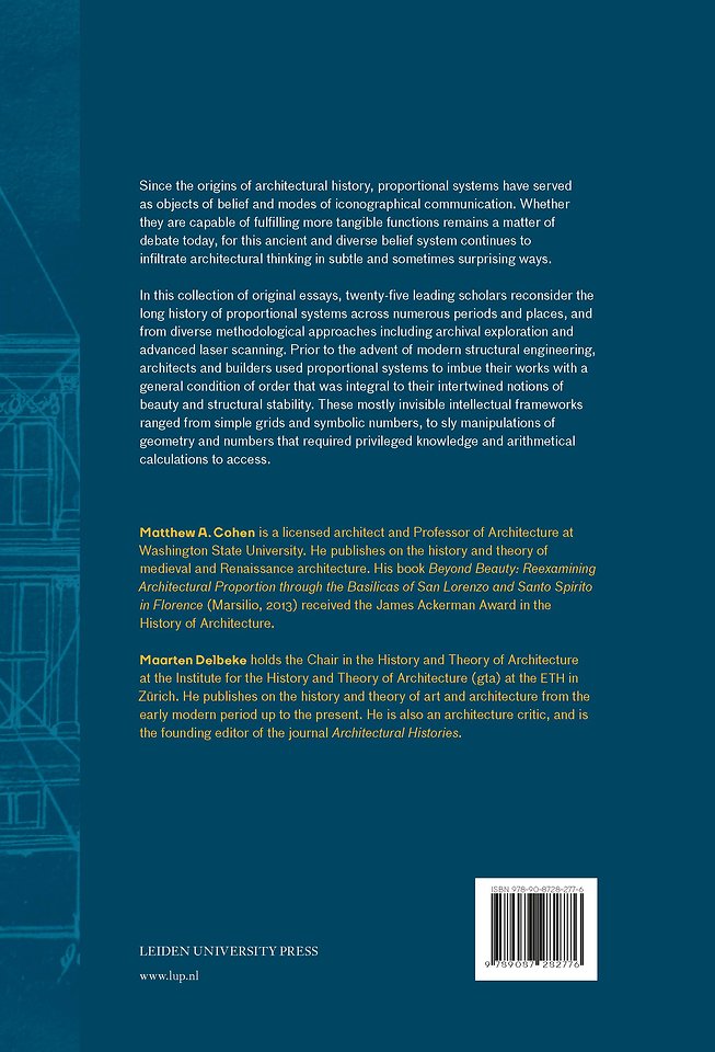 In this collection of original essays, twenty-six leading scholars reconsider the long history of proportional systems across numerous periods and places, and from diverse methodological approaches including archival exploration and advanced laser scanning. Prior to the advent of modern structural engineering, architects and builders used proportional systems to imbue their works with a general condition of order that was integral to their intertwined notions of beauty and structural stability. These mostly invisible intellectual frameworks ranged from simple grids and symbolic numbers, to sly manipulations of geometry and numbers that required privileged knowledge and arithmetical calculations to access.