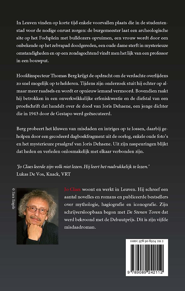 Berg probeert het kluwen van misdaden en intriges op te lossen, daarbij geholpen door een gecodeerd dagboekfragment uit de oorlog, enkele oude foto's en het mysterieuze praalgraf van Joris Dehaene. Uit hun zoektocht blijkt dat heden en verleden onlosmakelijk met elkaar verbonden zijn.