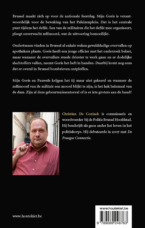 Ondertussen vinden in Brussel al enkele weken gewelddadige overvallen op apothekers plaats. Goris heeft een jonge officier met het onderzoek belast, maar wanneer de overvallers steeds driester te werk gaan en er dodelijke slachtoffers vallen, neemt Goris het heft in handen. Daarbij komt nog eens dat er overal in Brussel bombrieven ontploffen.
