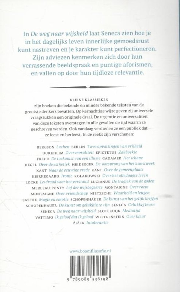 De weg naar wijsheid verscheen eerder in de Sapientia-reeks van Uitgeverij SUN, en nu opnieuw in de serie Kleine Klassieken. Van Gelukkig leven, de andere titel van Seneca in deze reeks, zijn al meer dan vijfduizend exemplaren verkocht.