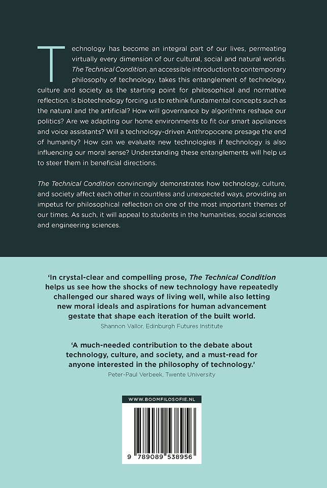 Technology has become an integral part of our lives, permeating virtually every dimension of our cultural, social and natural worlds. The Technical Condition, an accessible introduction to contemporary philosophy of technology, takes this entanglement of technology, culture and society as the starting point for philosophical and normative reflection. Is biotechnology forcing us to rethink fundamental concepts such as the natural and the artificial? How will governance by algorithms reshape our politics? Are we adapting our home environments to fit our smart appliances and voice assistants? Will a technology-driven Anthropocene presage the end of humanity? How can we evaluate new technologies if technology is also influencing our moral sense? Understanding these entanglements will help us to steer them in beneficial directions.