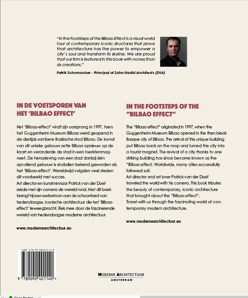 Art director en kunstminnaar Patrick van der Doef reisde met zijn camera de wereld rond. Met dit boek brengt hij een eerbetoon aan de schoonheid van hedendaagse, iconische architectuur die het ‘Bilbao- effect’ teweegbracht. Reis mee door de fascinerende wereld van hedendaagse moderne architectuur!