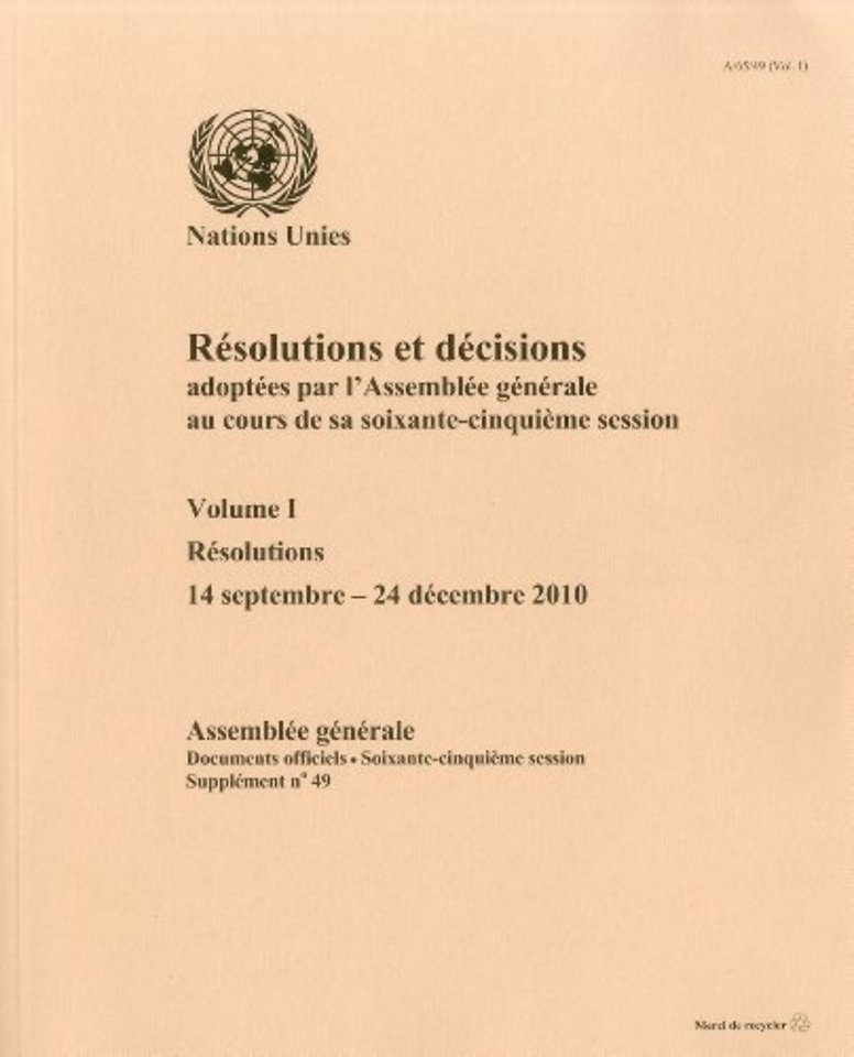 Résolutions et décisions adoptées par l`Assemblé – Volume 1, Résolutions, 14 Septembre–24 Décembre 2010