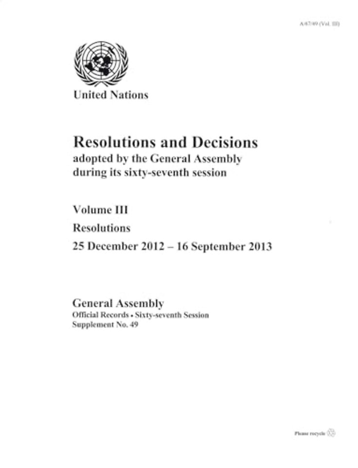 Resolutions and Decisions Adopted by the General Assembly during Its Sixty–Seventh Session, Volume III