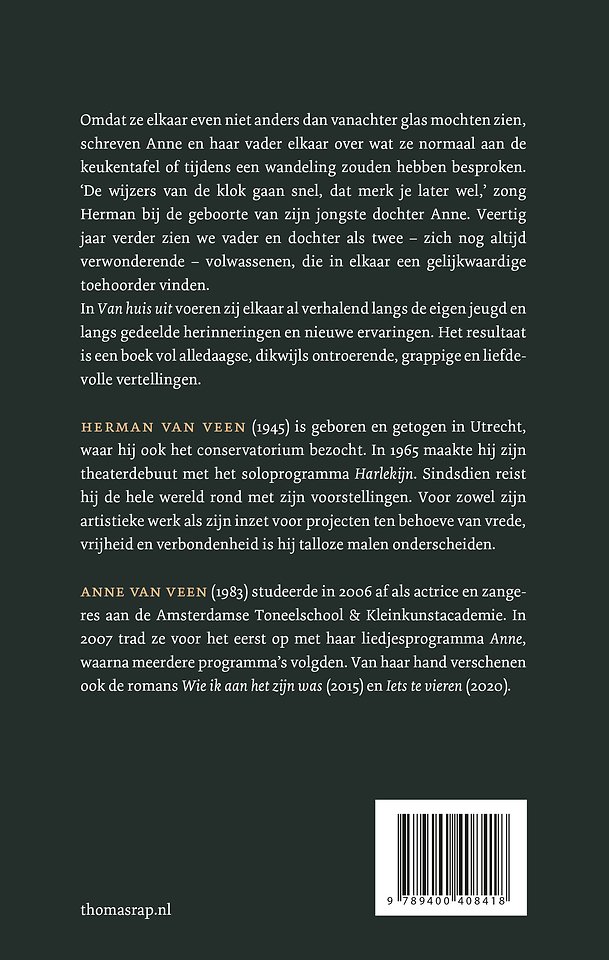 In Van huis uit voeren zij elkaar al verhalend langs de eigen jeugd, en langs gedeelde herinneringen en recentere ervaringen. Het resultaat is een boek vol alledaagse, dikwijls ontroerende, grappige en liefdevolle vertellingen.