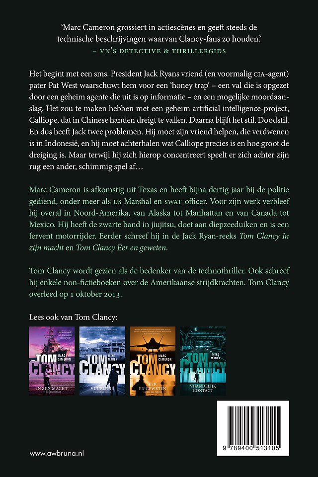 Het begint met een sms. President Jack Ryans vriend (en voormalig CIA-agent) pater Pat West waarschuwt hem voor een ‘honey trap’ – een val die is opgezet door een geheim agente die uit is op informatie – en een mogelijke moordaanslag. Het zou te maken hebben met een geheim artificial intelligence-project, Calliope, dat in Chinese handen dreigt te vallen. Daarna blijft het stil. Doodstil.