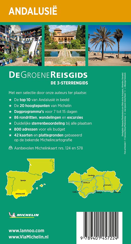 Met een selectie door onze auteurs ter plaatse: De top 10 van Andalusië in beeld De 20 hoogtepunten van Michelin Dagprogramma's voor 7 tot 15 dagen 86 rondritten, wandelingen en excursies Duidelijke sterrenbeoordeling bij alle plaatsen 800 adressen voor elk budget 42 kaarten en plattegronden gebaseerd op de bekende Michelincartografie