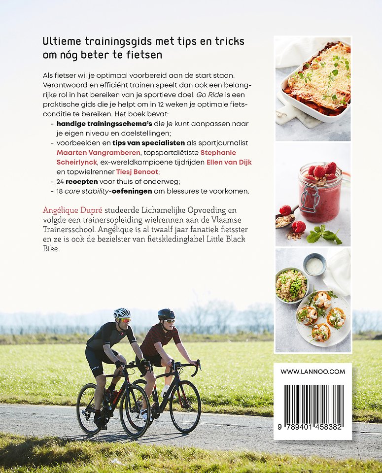 Het boek bevat: handige trainingsschema's die je kunt aanpassen naar je eigen niveau en doelstellingen; voorbeelden en tips van specialisten als sportjournalist Maarten Vangramberen, topsportdiëtiste Stephanie Scheirlynck, ex-wereldkampioene tijdrijden Ellen van Dijk en topwielrenner Tiesj Benoot; 24 recepten voor thuis of onderweg; 18 core stability-oefeningen om blessures te voorkomen.