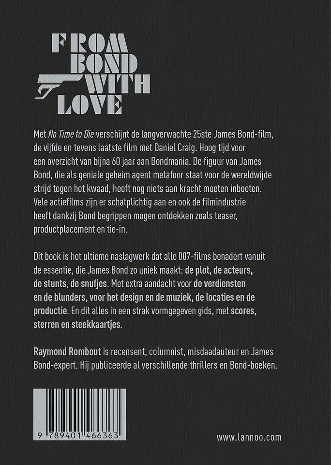Met No Time to Die verschijnt de langverwachte 25ste James Bond-film, de vijfde en tevens laatste film met Daniel Craig. Hoog tijd voor een overzicht van bijna 60 jaar aan Bondmania. De figuur van James Bond, die als geniale geheim agent metafoor staat voor de wereldwijde strijd tegen het kwaad, heeft nog niets aan kracht moeten inboeten. Vele actiefilms zijn er schatplichtig aan en ook de filmindustrie heeft dankzij Bond begrippen mogen ontdekken zoals teaser, productplacement en tie-in.