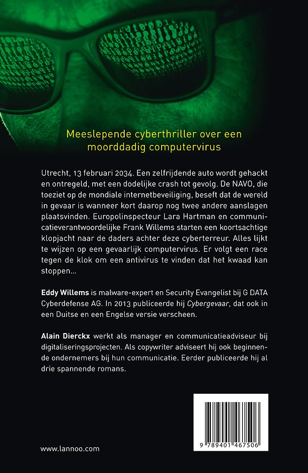 Utrecht, 13 februari 2034. Een zelfrijdende auto wordt gehackt en ontregeld, met een dodelijke crash tot gevolg. De NAVO, die toeziet op de mondiale internetbeveiliging, beseft dat de wereld in gevaar is wanneer kort daarop nog twee andere aanslagen plaatsvinden. Europolinspecteur Lara Hartman en communicatieverantwoordelijke Frank Willems starten een koortsachtige klopjacht naar de daders achter deze cyberterreur. Alles lijkt te wijzen op een gevaarlijk computervirus. Er volgt een race tegen de klok om een antivirus te vinden dat het kwaad kan stoppen...