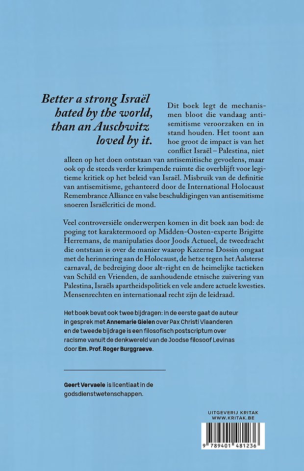 Dit boek legt de mechanismen bloot die vandaag antisemitisme veroorzaken en in stand houden. Het toont aan hoe groot de impact is van het conflict Israël-Palestina, niet alleen op het doen ontstaan van antisemitische gevoelens, maar ook op de steeds verder krimpende ruimte die overblijft voor legitieme kritiek op het beleid van Israël. Misbruik van de definitie van antisemitisme, gehanteerd door de International Holocaust Remembrance Alliance en valse beschuldigingen van antisemitisme snoeren Israëlcritici de mond.
