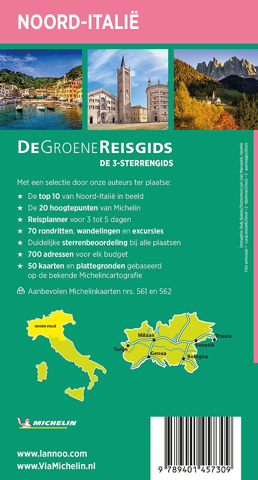 Met een selectie door onze auteurs ter plaatse: De top 10 van Noord-Italië in beeld De 20 hoogtepunten van Michelin Reisplanner voor 3 tot 5 dagen 70 rondritten, wandelingen en excursies Duidelijke sterrenbeoordeling bij alle plaatsen 700 adressen voor elk budget 50 kaarten en plattegronden gebaseerd op de bekende Michelincartografie