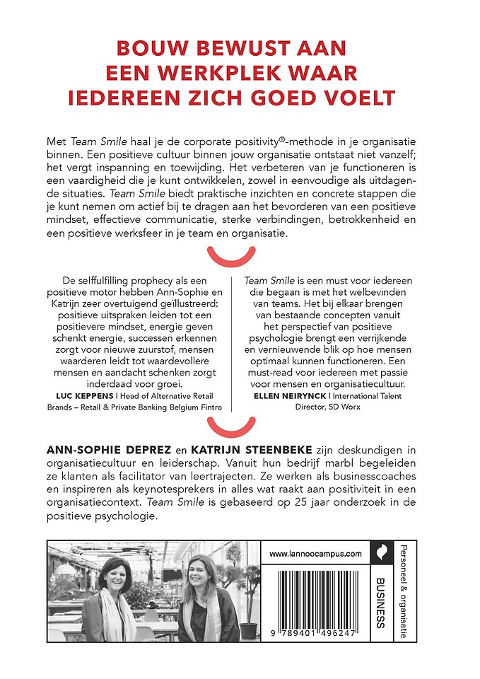 'Team Smile is een must voor iedereen die begaan is met het welbevinden van teams. Het bij elkaar brengen van bestaande concepten vanuit het perspectief van positieve psychologie brengt een verrijkende en vernieuwende blik op hoe mensen optimaal kunnen functioneren. Een must-read voor iedereen met passie voor mensen en organisatiecultuur.'