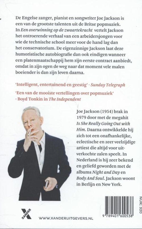 De Engelse zanger, pianist en songschrijver Joe Jackson is één van de grootste en veelzijdigste talenten uit de Britse popmuziek. Maar omdat 'het leven van een popster eigenlijk geen boek waard is' laat de eigenzinnige Jackson zijn onderhoudende en humoristische muzikale autobiografie eindigen als een platenmaatschappij hem zijn eerste platencontract aanbiedt. En dat maakt Een overwinning op de zwaartekracht zo lezenswaardig: niet het succesvolle gedeelte van zijn leven wordt verteld, maar juist het ontroerende verhaal van de Engelse arbeidersjongen uit de jaren zeventig voor wie de technische school meer voor de hand lag dan het conservatorium. En Jackson kijkt veel meer naar waar hij vandaan komt dan naar wat hij bereikt heeft. Het is het verhaal van een zeer getalenteerde jongen in ogenschijnlijk kansarme omgeving die zijn talent en liefde voor muziek ontdekt en daarmee zijn kansen voor altijd keert.
