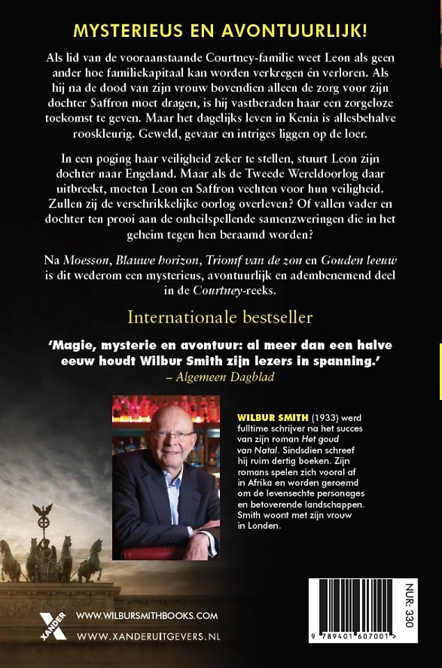 Als lid van de vooraanstaande Courtney familie, weet Leon als geen ander hoe familiekapitaal kan worden verworven én verloren. Als hij na de dood van zijn vrouw bovendien plotseling alleen de zorg voor zijn dochter Saffron draagt, is hij vastberaden haar een zorgeloze toekomst te geven. Maar het dagelijks leven in Kenya is allesbehalve rooskleurig. Geweld, gevaar en intriges liggen op de loer. In een poging haar veiligheid te garanderen, stuurt Leon Saffron naar Engeland. Maar als de Tweede Wereldoorlog daar uitbreekt moeten ze beiden vechten voor hun veiligheid. Zullen zij de verschrikkelijke oorlog overleven? Of vallen vader en dochter ten prooi aan de onheilspellende samenzweringen die tijdens de allesverwoestende oorlog in het geheim tegen hen beraamd worden?