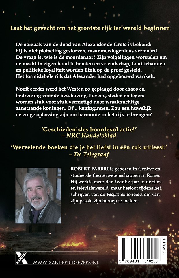 De Alexanders erfenis-serie is net zo monumentaal, bruut en bloedstollend als de Vespasianus-serie, waar Robert Fabbri eerder al veel lezers op het puntje van hun stoel liet zitten. Zijn filmische stijl en zinderende spanning doen denken aan series als Game of Thrones.