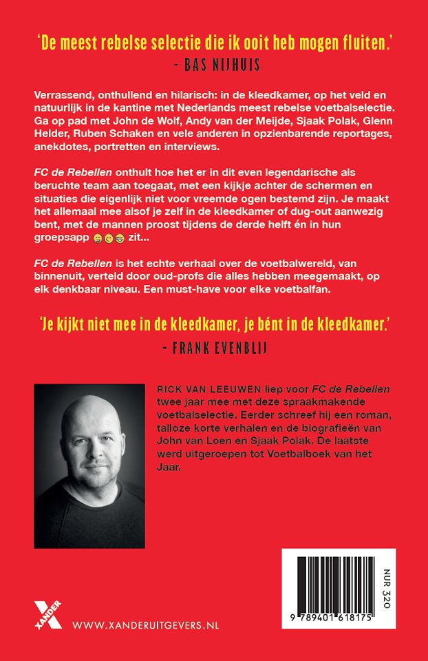 FC de Rebellen van schrijver Rick van Leeuwen is een verrassende, onthullende en vaak hilarische schets van de gang van zaken bij Nederlands meest rebelse voetbalselectie. Met rollen voor John de Wolf, Andy van der Meijde, Ricky van den Bergh, Romano Denneboom en vele anderen. Auteur Rick van Leeuwen volgde het gelegenheidsteam een aantal jaar, wordt inmiddels beschouwd als one of the guys, en schreef dit geweldige boek vol reportages, anekdotes, portretten en interviews.