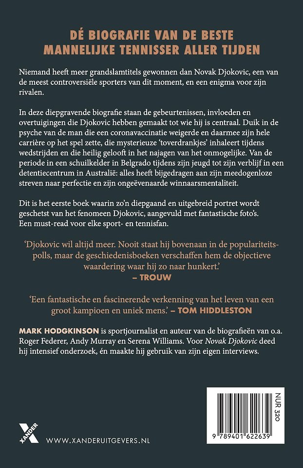 In deze diepgravende biografie staan de gebeurtenissen, invloeden en overtuigingen die Djokovic hebben gemaakt tot wie hij is centraal. Duik in de psyche van de man die een coronavaccinatie weigerde en daarmee zijn hele carrière op het spel zette, die mysterieuze ‘toverdrankjes’ inhaleert tijdens wedstrijden en die heilig gelooft in het najagen van het onmogelijke. Van de periode in een schuilkelder in Belgrado tijdens zijn jeugd tot zijn verblijf in een detentiecentrum in Australië: alles heeft bijgedragen aan zijn meedogenloze streven naar perfectie en zijn ongeëvenaarde winnaarsmentaliteit.