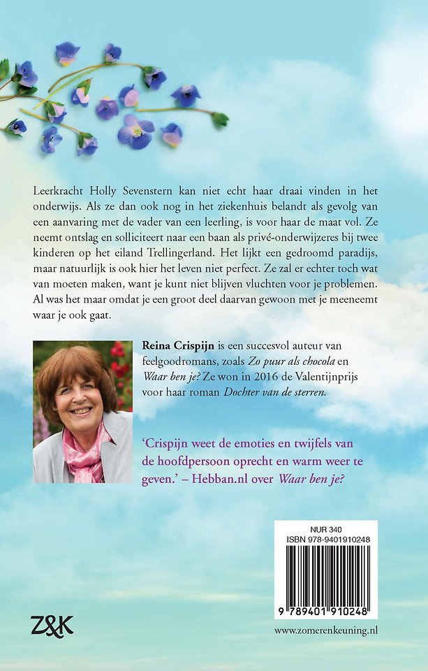 De roman Eilandliefde van Reina Crispijn is feelgood met een vleugje spanning. Lerares Holly Sevenstern wordt in haar werk bedreigd en besluit daarom ontslag te nemen. Ze neemt een nieuwe baan aan op het eiland Trellingerland, waar ze privéles gaat geven. Holly voelt zich aangetrokken tot de landheer, maar is dat wederzijds? En van wie komen de anonieme cadeaus die Holly ontvangt? Eilandliefde leest dankzij de vaardige pen van Reina Crispijn, die in 2016 de Valentijnprijs kreeg voor haar roman Dochter van de sterren, heerlijk weg.