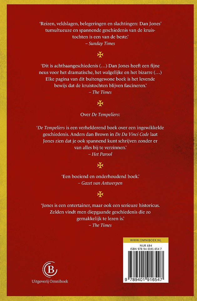 Tussen de elfde en de dertiende eeuw vochten christelijke en islamitische legers om zeggenschap over het Heilige Land. In De Kruisvaarders vertelt Dan Jones het verhaal van de eerste kruistocht in 1095 onder aanvoering van de Brabander Godfried van Bouillon en graaf Robrecht van Béthune, de Leeuw van Vlaanderen, tot en met het verlies van het laatste christelijke bolwerk in de Levant. In elk van de 25 hoofdstukken staat een persoon - meer of minder bekend - centraal. Dan Jones is een van de populairste historici van het moment. Ook De Kruisvaarders maakt weer duidelijk waarom: Jones blinkt uit in het schrijven van verhalende geschiedenis.