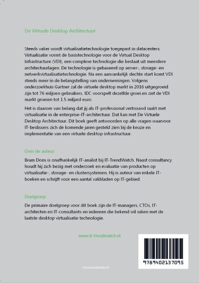 Dit boek probeert zo goed mogelijk antwoorden te vinden op al die vragen waarvoor IT-beslissers zich de komende jaren gesteld zien bij de keuze en implementatie van een virtuele desktop infrastructuur.
