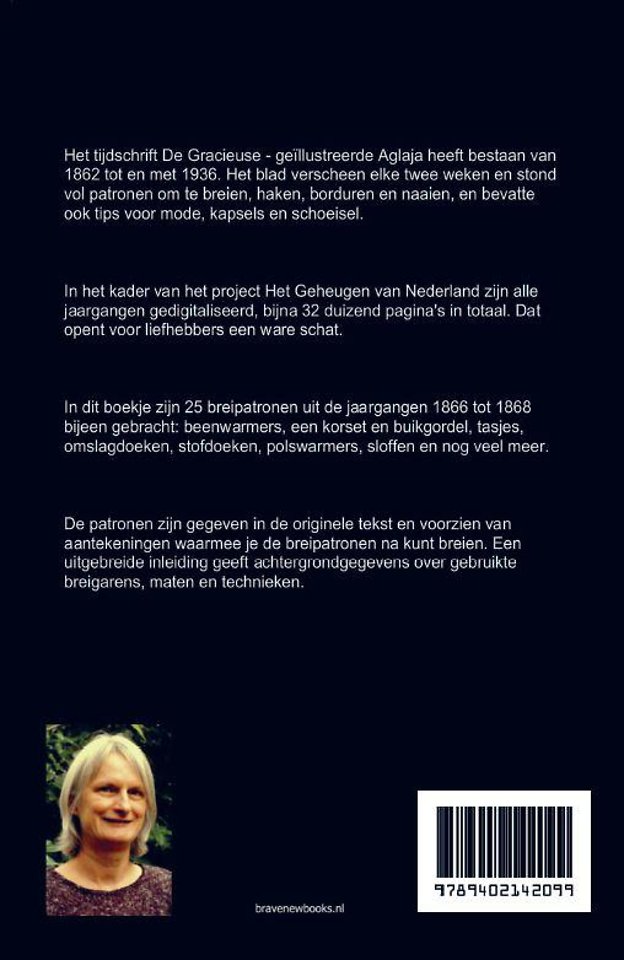 In dit boek zijn 25 breipatronen uit de negentiende eeuw uit de jaren 1860-1869 uit het tijdschrift De Gracieuse bijeengebracht: beenwarmers, korset en buikgordel, tasjes, omslagdoeken, stofdoeken, polswarmers, sloffen en nog veel meer.