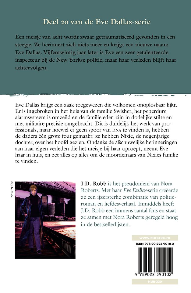 Eve Dallas krijgt een zaak toegewezen die volkomen onoplosbaar lijkt. Er is ingebroken in het huis van de familie Swisher, het peperdure alarmsysteem is omzeild en de familieleden zijn in dodelijke stilte met militaire precisie omgebracht. Dit is duidelijk het werk van professionals, maar hoewel er geen spoor van dna te vinden is, hebben de daders één grote fout gemaakt: ze hebben Nixie, de negenjarige dochter des huizes, over het hoofd gezien. Ondanks de afschuwelijke herinneringen aan haar eigen verleden die het meisje bij haar oproept, neemt Eve haar in huis, en zet alles op alles om de moordenaars van Nixies familie te vinden.