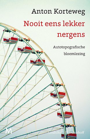 In Nooit eens lekker nergens, een royale bloemlezing van 75 gedichten uit eigen werk, legt Anton Korteweg een autotopografisch parcours af, van start (Zevenbergen) tot nagenoeg finish (Leiden). Op de plaatsen die hij aandoet, van Wierum tot Watou, wordt er – doorgaans met opgewekt gemoed – gewoond, gewerkt, gewandeld, gefietst, gekeken en gemijmerd. Dat alles in het besef dat het zich ergens bevinden wel erg is, maar ook weer niet