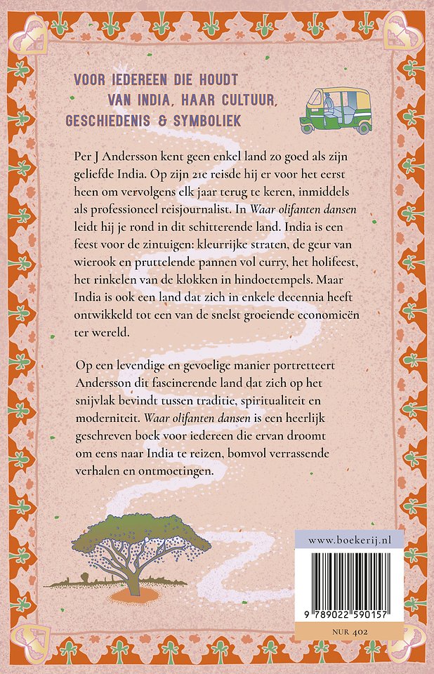 Per J Andersson kent geen enkel land zo goed als zijn geliefde India. Op zijn 21e reisde hij er voor het eerst heen om vervolgens elk jaar terug te keren, inmiddels als professioneel reisjournalist. In Waar olifanten dansen leidt hij je rond in dit schitterende land. India is een feest voor de zintuigen: kleurrijke straten bezaaid met standbeelden, de geur van wierook en pruttelende pannen vol curry, het holifeest, het rinkelen van de klokken in hindoetempels en het geluid van de oproep voor het gebed van de moskee. Maar India is ook een land dat zich in enkele decennia heeft ontwikkeld tot een van de snelst groeiende economieën ter wereld.