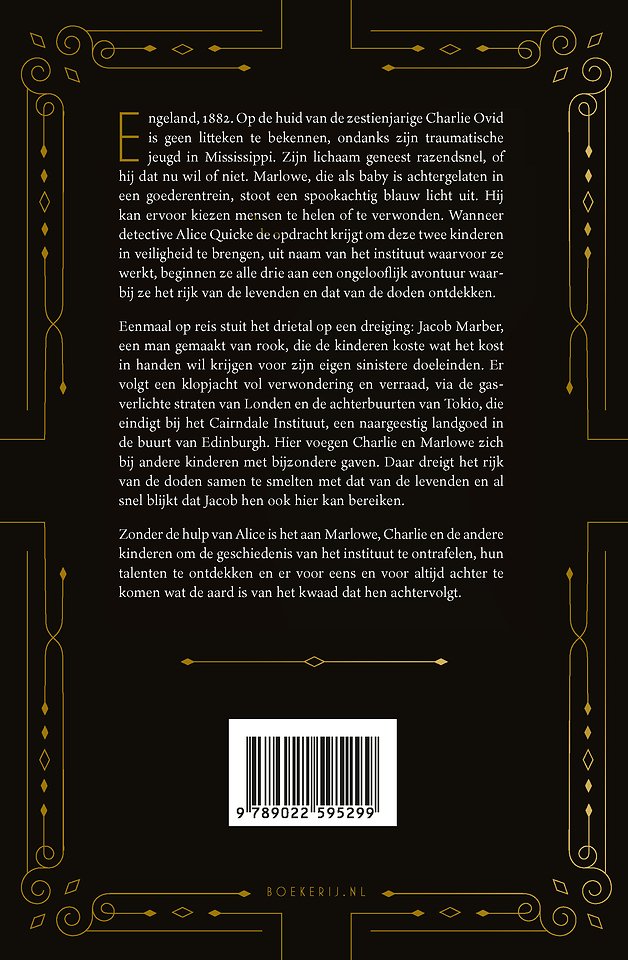 Eenmaal op reis stuit het drietal op een dreiging: Jacob Marber, een man gemaakt van rook, die de kinderen koste wat het kost in handen wil krijgen voor zijn eigen sinistere doeleinden. Er volgt een klopjacht vol verwondering en verraad, via de gasverlichte straten van Londen en de achterbuurten van Tokio, die eindigt bij het Cairndale Instituut, een naargeestig landgoed in de buurt van Edinburgh. Hier voegen Charlie en Marlowe zich bij andere kinderen met bijzondere gaven. Daar dreigt het rijk van de doden samen te smelten met dat van de levenden en al snel blijkt dat Jacob hen ook hier kan bereiken.