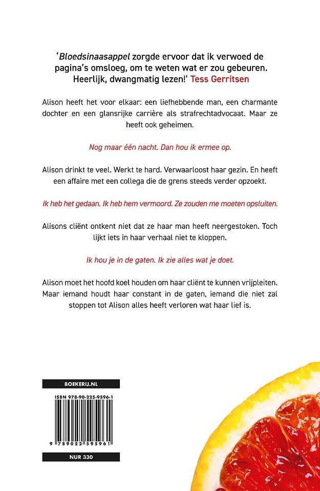 'Bloedsinaasappel zorgde ervoor dat ik verwoed de pagina’s omsloeg, om te weten wat er zou gebeuren. Heerlijk, dwangmatig lezen!’ Tess Gerritsen