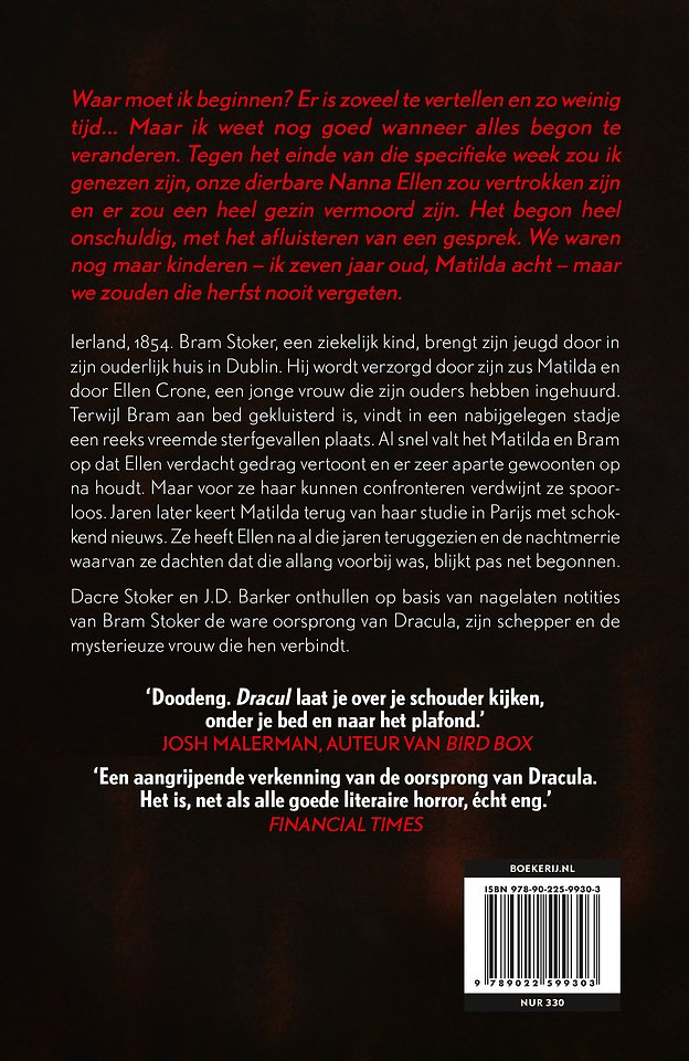 Dacre Stoker en J.D. Barker onthullen op basis van nagelaten notities van Stoker zelf de ware oorsprong van Dracula, zijn schepper en de mysterieuze vrouw die hen verbindt.