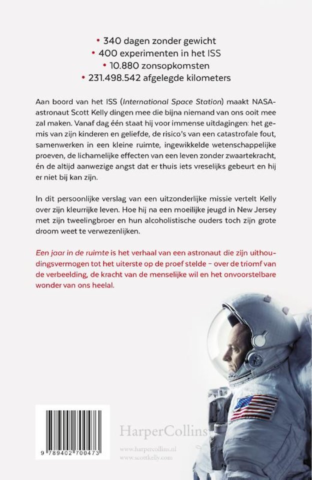 Aan boord van het ISS (International Space Station) maakt NASAastronaut Scott Kelly dingen mee die bijna niemand van ons ooit mee zal maken. Vanaf dag één staat hij voor immense uitdagingen: het gemis van zijn kinderen en geliefde, de risico's van een catastrofale fout, samenwerken in een kleine ruimte, ingewikkelde wetenschappelijke proeven, de lichamelijke effecten van een leven zonder zwaartekracht, én de altijd aanwezige angst dat er thuis iets vreselijks gebeurt en hij er niet bij kan zijn.