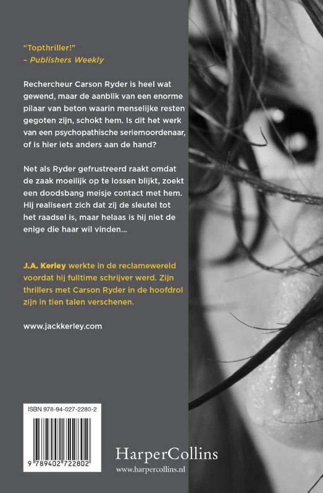 Rechercheur Carson Ryder is heel wat gewend, maar de aanblik van een enorme pilaar van beton waarin menselijke resten gegoten zijn, schokt hem. Is dit het werk van een psychopathische seriemoordenaar, of is hier iets anders aan de hand?Net als Ryder gefrustreerd raakt omdat de zaak moeilijk op te lossen blijkt, zoekt een doodsbang meisje contact met hem. Hij realiseert zich dat zij de sleutel tot het raadsel is, maar helaas is hij niet de enige die haar wil vinden...