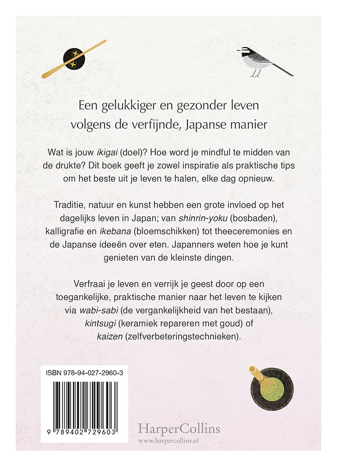 Traditie, natuur en kunst hebben een grote invloed op het dagelijks leven in Japan; van shinrin-yoku (bosbaden), kalligrafie en ikebana (bloemschikken) tot theeceremonies en de Japanse ideeën over eten. Japanners weten hoe je kunt genieten van de kleinste dingen.