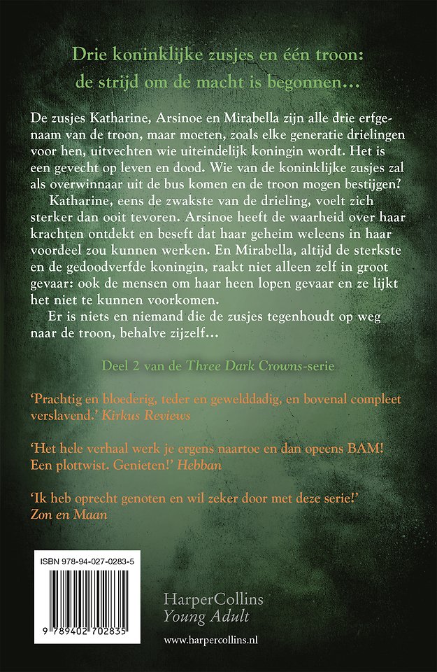Katharine, eens de zwakste van de drieling, voelt zich sterker dan ooit tevoren. Arsinoe heeft de waarheid over haar krachten ontdekt en beseft dat haar geheim weleens in haar voordeel zou kunnen werken. En Mirabella, altijd de sterkste en de gedoodverfde koningin, raakt niet alleen zelf in groot gevaar: ook de mensen om haar heen lopen gevaar en ze lijkt het niet te kunnen voorkomen.