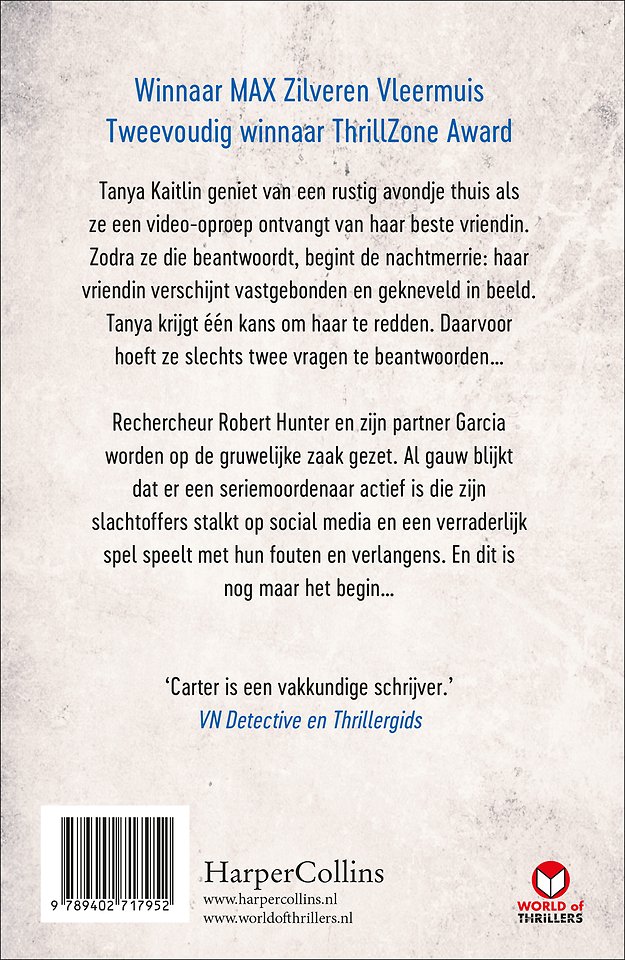Rechercheur Robert Hunter en zijn partner Garcia worden op de gruwelijke zaak gezet. Al gauw blijkt dat er een seriemoordenaar actief is die zijn slachtoffers stalkt op social media en een verraderlijk spel speelt met hun fouten en verlangens. En dit is nog maar het begin…