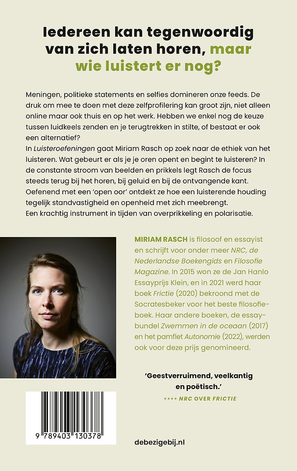Luisteren is hip, constateert filosofe Miriam Rasch in ‘Luisteroefeningen’. Maar wat vraagt het eigenlijk van je? Haar specifieke invalshoek: de ethiek van het luisteren, maakt nieuwsgierig. En we worden niet teleurgesteld, al vraagt dit boek wel een stevige inspanning. Luisteren vergt oefening, en daarom gaan we - met Rasch - luisteroefeningen doen.