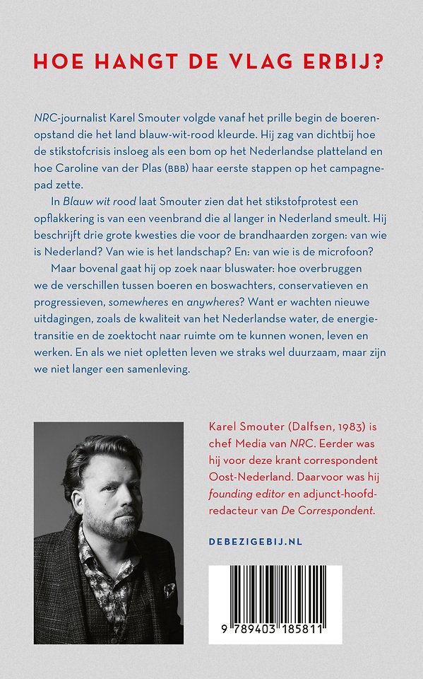 NRC-Journalist Karel Smouter volgde vanuit zijn standplaats Deventer vanaf het prille begin de boerenopstand die het land blauw-wit-rood kleurde. Hij zag van dichtbij hoe de uitspraak van Kamerlid Tjeerd de Groot (D66) in september 2019 insloeg als een bom op het Nederlandse platteland, hoe bij steeds meer boerderijen een omgekeerde vlag werd gehesen en hoe Caroline van der Plas (BBB) haar eerste stappen op het campagnepad zette.