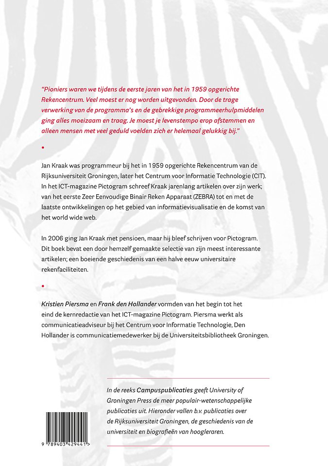 In 2006 ging Jan Kraak met pensioen, maar hij bleef schrijven voor Pictogram. Dit boek bevat een door hemzelf gemaakte selectie van zijn meest interessante artikelen; een boeiende geschiedenis van een halve eeuw universitaire rekenfaciliteiten.