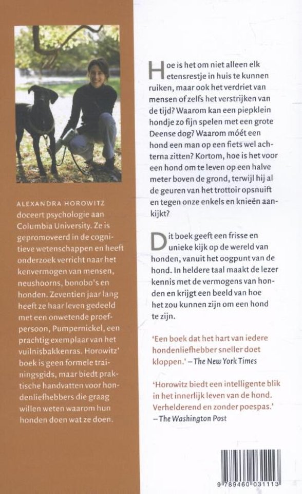 Dit boek geeft een frisse en unieke kijk op de wereld van honden, vanuit het oogpunt van de hond. In heldere taal maakt de lezer kennis met de vermogens van honden en krijgt een beeld van hoe het zou kunnen zijn om een hond te zijn.