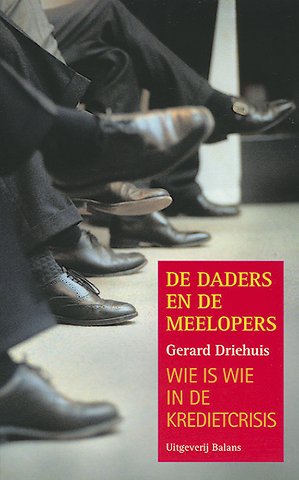 In 'De daders en de meelopers' portretteert Gerard Driehuis de belangrijkste daders en hun meelopers. Van de zelfverzekerde Alan Greenspan (Amerikaanse centrale bank) tot de machtshongerige Graaf Lippens (Fortis). Van de pedante Nout Wellink (De Nederlandsche Bank) tot de overspannen Michel Tilmant (ING). Van meesteroplichter Bernard Madoff tot supercommissaris Wim Kok. Van de snoeiharde Richard Fuld (Lehman Brothers) tot de contactgestoorde Rijkman Groenink (ABN Amro).