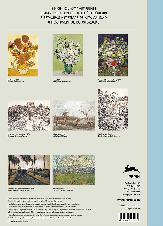 Pepin Press Art Portfolios contain 8 high-quality art reproductions printed on 200 gsm watercolour paper or satin coated art paper. These papers are non-ageing, manufactured from chlorine-free pulp by FSC and PEFC certified mills. The prints are enclosed in hardback portfolio covers made of premium paperboard with inner end papers along with flaps for further protection. The portfolios have a high-quality cloth spine (made of rayon, a plant-based fiber) and a cotton ribbon closure. All images reproduced come from our own archives, except for the van Gogh and Monet volumes. In our selections we have sought to combine complimentary images, striking a balance between the familiar and those lesser known. Alongside traditionally famous images many uncommon but delightful drawings and prints can also be found.