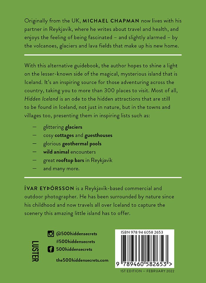 Originally from the UK, MICHAEL CHAPMAN now lives with his partner in Reykjavík, where he writes about travel and health, and enjoys the feeling of being fascinated – and slightly alarmed – by the volcanoes, glaciers and lava fields that make up his new home.With this alternative guidebook, the author hopes to shine a light on the lesser-known side of the magical, mysterious island that is Iceland. It’s an inspiring source for those adventuring across the country, taking you to more than 300 places to visit. Most of all, Hidden Iceland is an ode to the hidden attractions that are still to be found in Iceland, not just in nature, but in the towns and villages too, presenting them in inspiring lists such as:— glittering glaciers— cosy cottages and guesthouses— glorious geothermal pools— wild animal encounters— great rooftop bars in Reykjavík— and many more.ÍVAR EYÞÓRSSON is a Reykjavík-based commercial and outdoor photographer. He has been surrounded by nature since his childhood and now travels all over Iceland to capture the scenery this amazing little island has to offer.