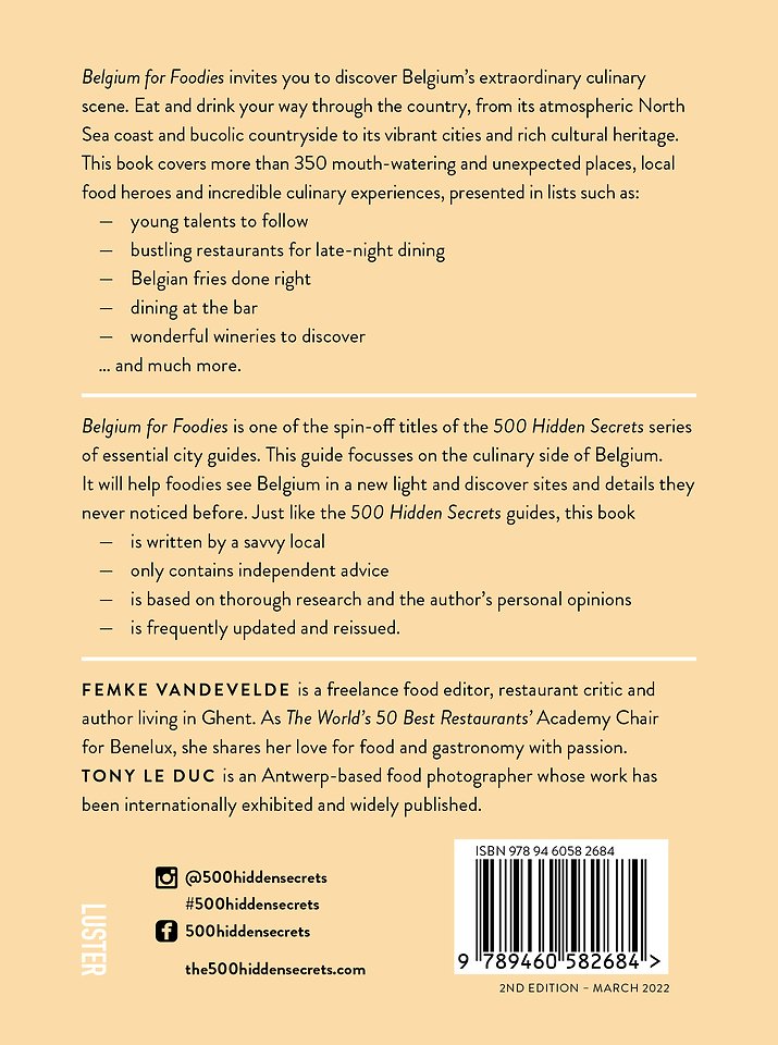 The third title in the themed spin-off series of The 500 Hidden Secrets is a must-read for anyone who cares about good food and is spending time in Belgium. In Belgium for Foodies Femke Vandevelde leads you to the best places in Belgium to eat and drink. Femke is a food writer and restaurant critic (for a.o. De Morgen Magazine). She inherited a passion for great food and quality products from her grandmother, and as a journalist she is always in the know about what’s happening in the Belgian culinary scene. In this guide she shares the places every foodie should visit in Belgium, from amazing food shops to extraordinary dining locations, and from top restaurants to simple local specialties. Discover lists such as: vineyards that are worth the trip, the best Japanese restaurants, restaurants where chefs eat, the best places for liege-style meat balls, and much more.