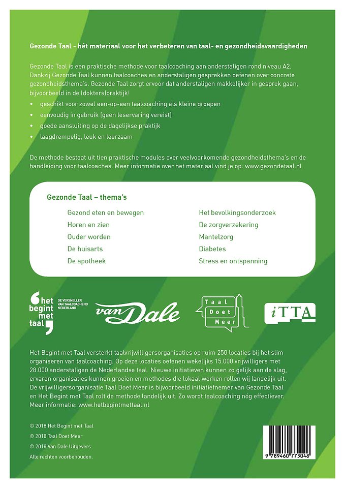Gezonde Taal is een praktische methode voor taalcoaching aan anderstaligen rond niveau A2. Dankzij Gezonde Taal kunnen taalcoaches en anderstaligen gesprekken oefenen over concrete gezondheidsthema’s. Gezonde Taal zorgt ervoor dat anderstaligen makkelijker in gesprek gaan, bijvoorbeeld in de (dokters)praktijk!