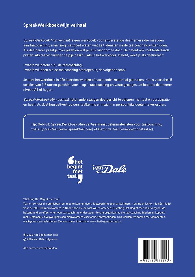 Tip: Gebruik SpreekWerkboek Mijn verhaal naast oefenmaterialen voor taalcoaching, zoals SpreekTaal (www.spreektaal.com) of Gezonde Taal (www.gezondetaal.nl).