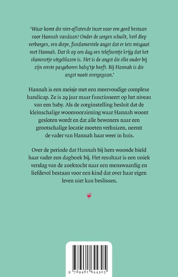 Over de periode dat Hannah bij hem woonde hield haar vader een dagboek bij. Het resultaat is een uniek verslag van de zoektocht naar een menswaardig en liefdevol bestaan voor een kind dat over haar eigen leven niet kan beslissen.