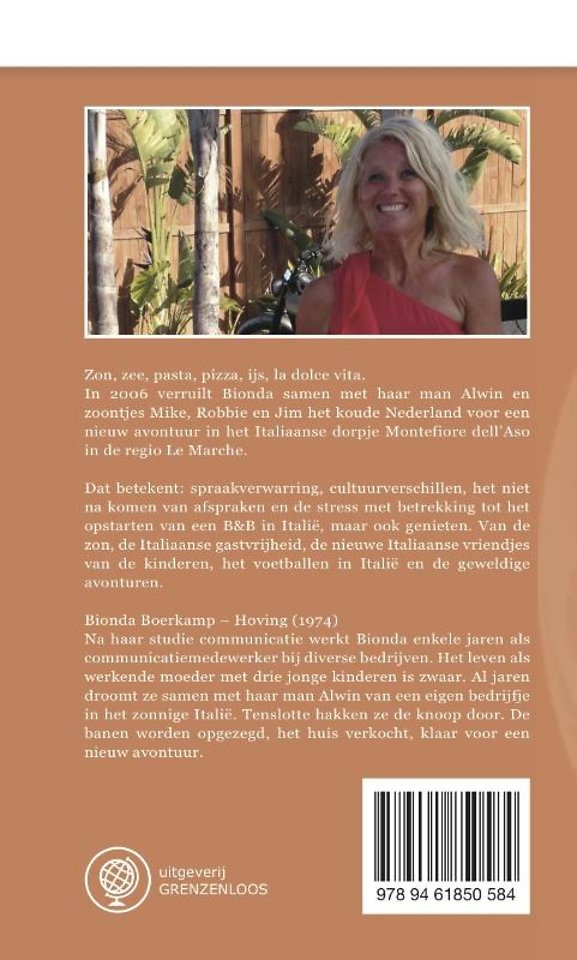 In 2006 verruilt Bionda samen met haar man Alwin en zoontjes Mike, Robbie en Jim het koude Nederland voor een nieuw avontuur in het Italiaanse dorpje Montefiore dell'Aso in de regio Le Marche. Dat betekent: spraakverwarring, cultuurverschillen, het niet na komen van afspraken en de stress met betrekking tot het opstarten van een B&B in Italië, maar ook genieten. Van de zon, de Italiaanse gastvrijheid, de nieuwe Italiaanse vriendjes van de kinderen, het voetballen in Italië en de geweldige avonturen.